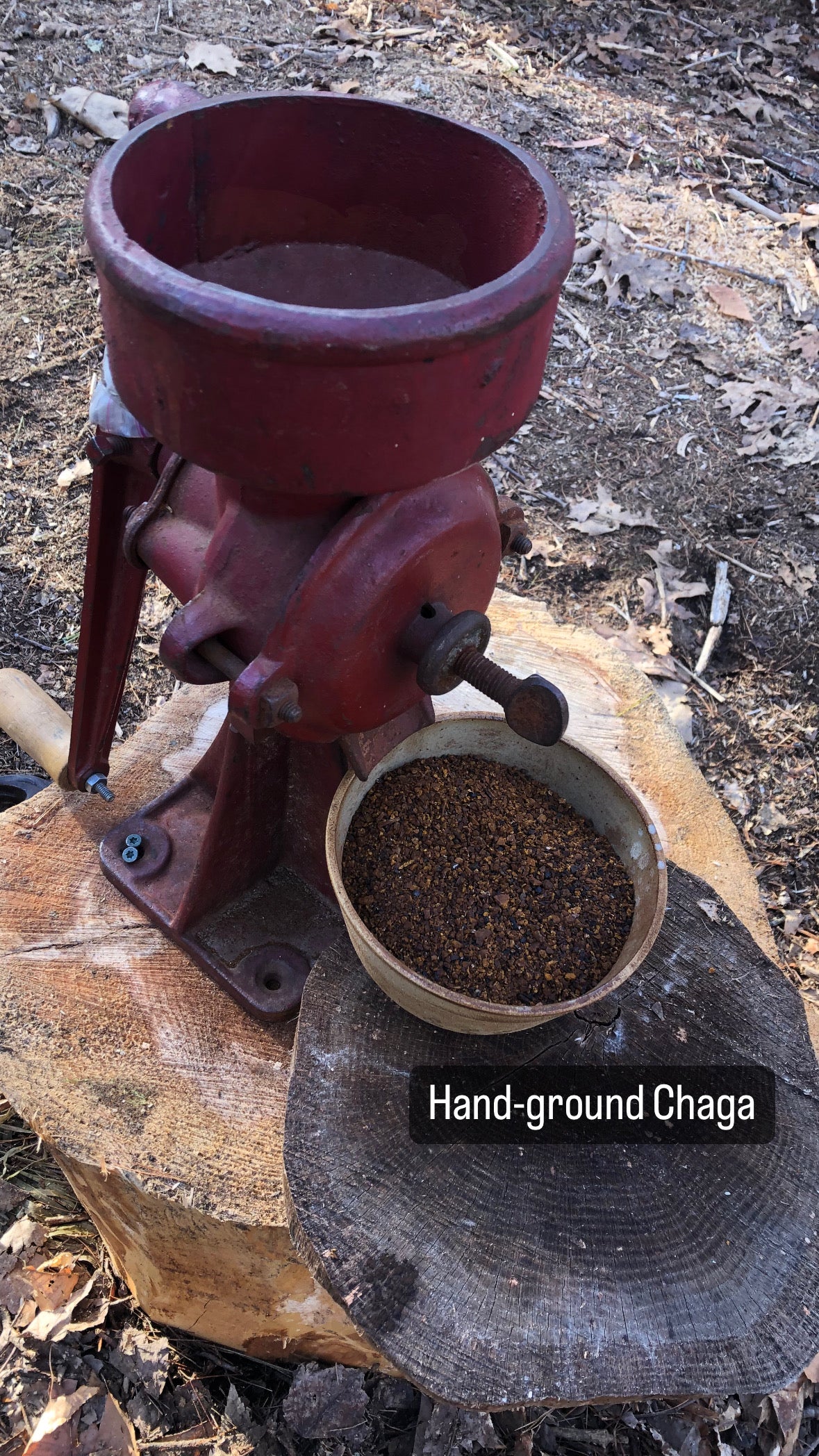 Each processing decision we make is rooted in this respect and gratitude. We process chaga completely by hand, from gathering, breaking up each conch into smaller pieces, to grinding, and pressing after both the alcohol extraction and decoction.