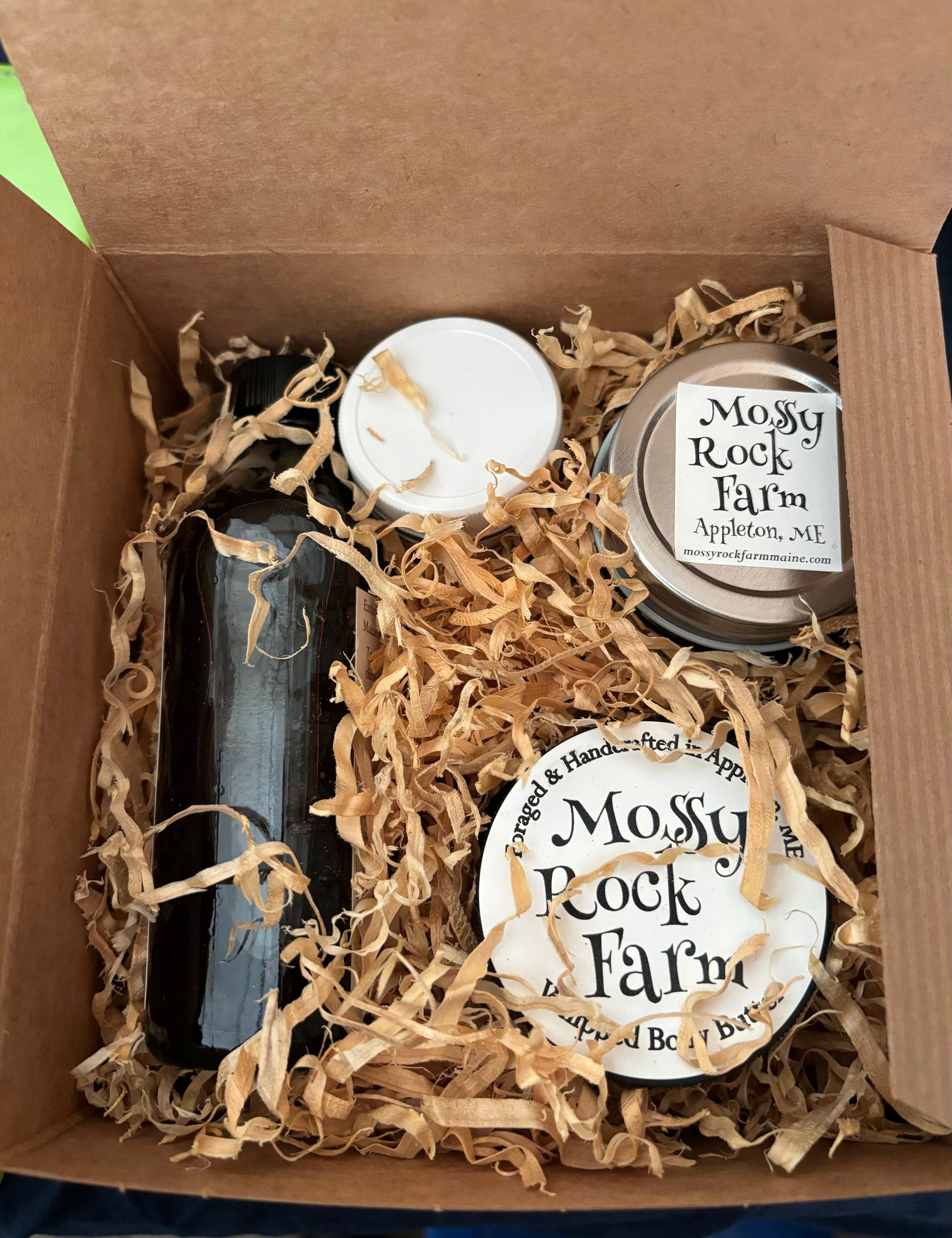 Brown pinstripe box measuring 6” x 6” x 4”.